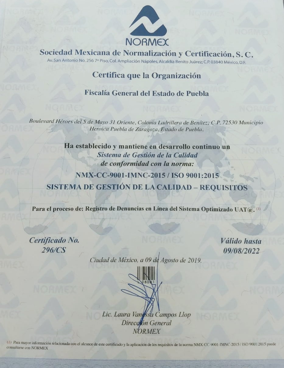 Está encabezado por la Fiscalía General del Estado de Puebla e integrado por: